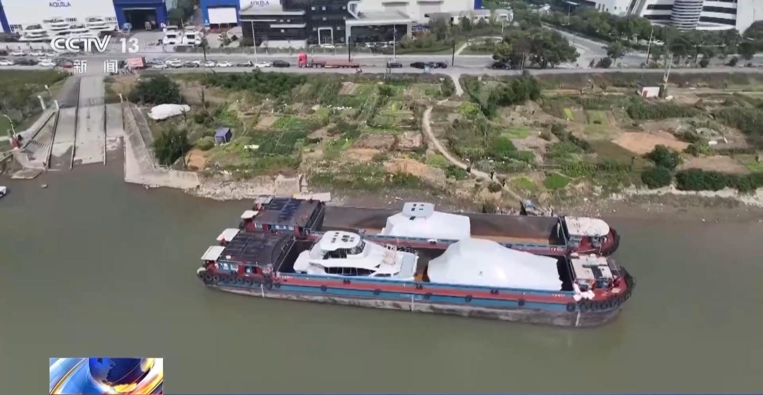 在杭州富阳东洲工业园码头,华鹰集团的赛艇正待发往海外。近两年企业海外订单持续增长,国际市场对产品的环保要求也越来越高。